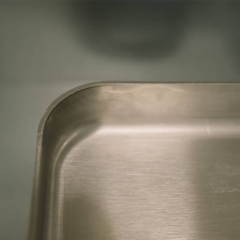 Tiefgezogene Platte aus Edelstahl mit abgerundeten Ecken