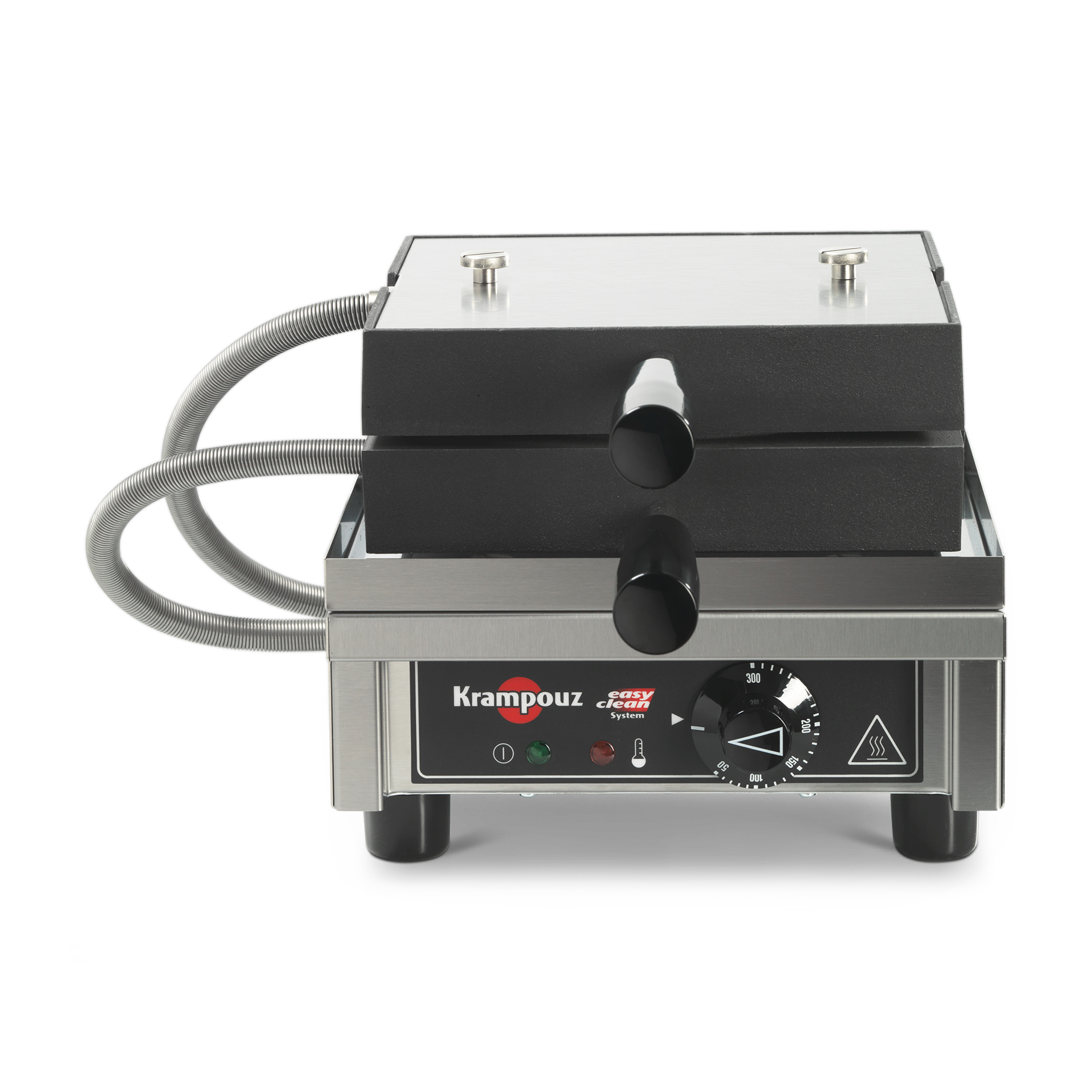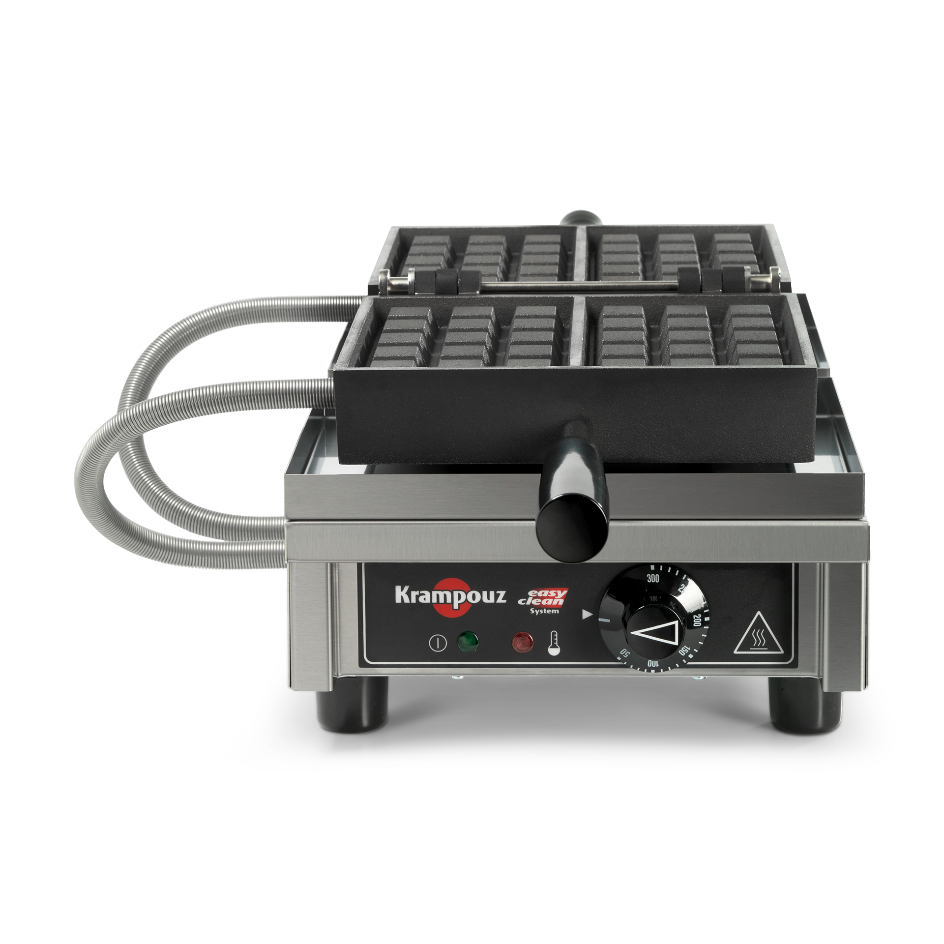 Krampouz’s professional 3×5 Brussels waffle maker can cook two waffles simultaneously. The 180° opening means that the batter spreads perfectly over the two irons, for a waffle that is nicely shaped, evenly cooked and crisp.