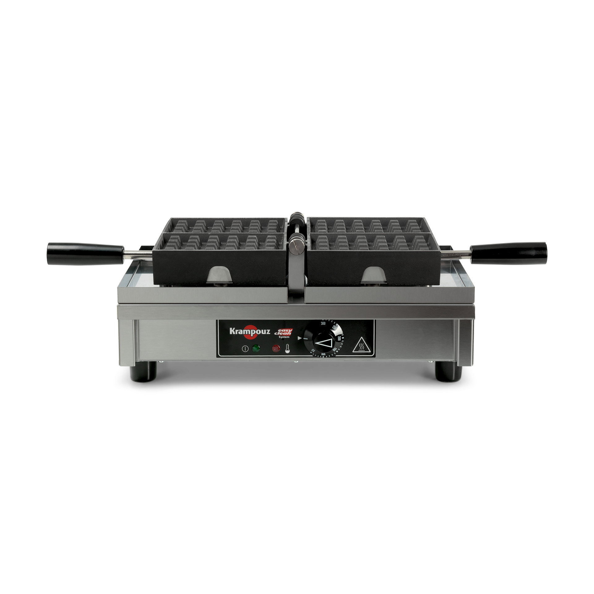 La gofrera 4×6 Lieja de Krampouz permite cocinar 2 gofres. Su apertura a 180° garantiza una distribución perfecta de la masa por ambas planchas, dando así lugar a un gofre bien formado y con una cocción homogénea y crujiente.
