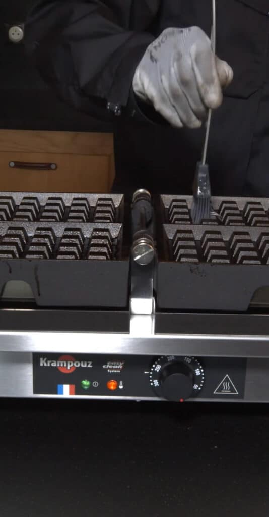 Le gaufrier professionnel double 4×6 Bruxelles Krampouz permet de cuire 4 gaufres simultanément. La rotation des fers assure une répartition parfaite de la pâte sur les deux fers pour une gaufre bien formée et une cuisson homogène et croustillante.