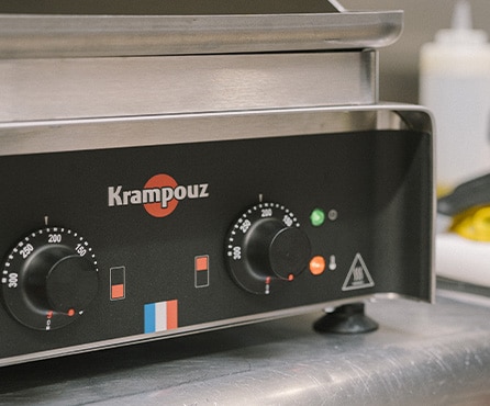Bénéficiant d'une conception unique, les planchas Krampouz combinent une plaque de cuisson 100% inox à une plaque conductrice de chaleur pour assurer une excellente répartition de la chauffe et réactivité aux changements de température. La promesse d'une cuisson haute précision grâce aux deux thermostats réglables.